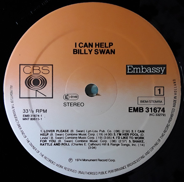 Billy Swan – I Can Help (LP, Album, RE)