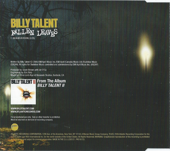 Billy Talent – Fallen Leaves (CD, Single, Promo)