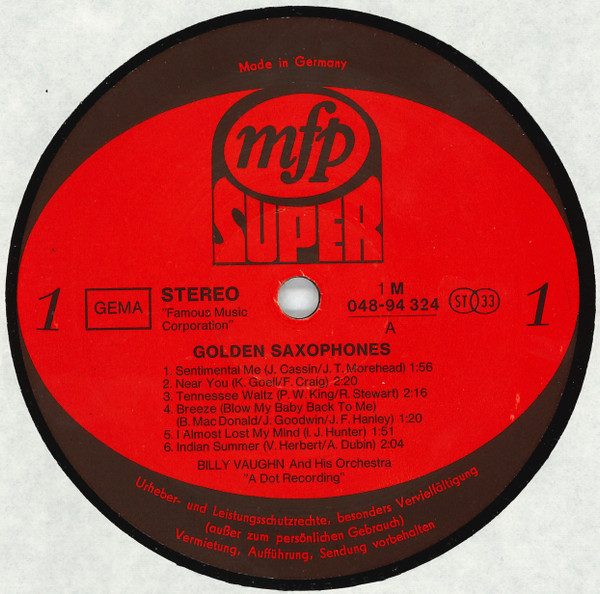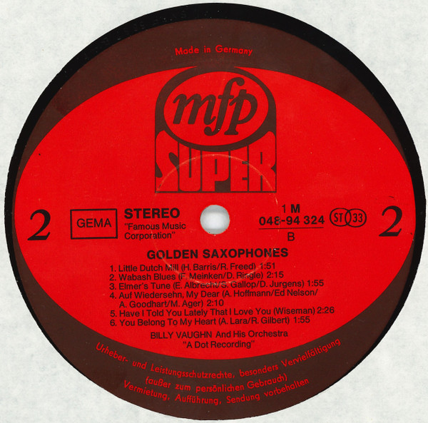 Billy Vaughn And His Orchestra – Golden Saxophones (LP, Album)