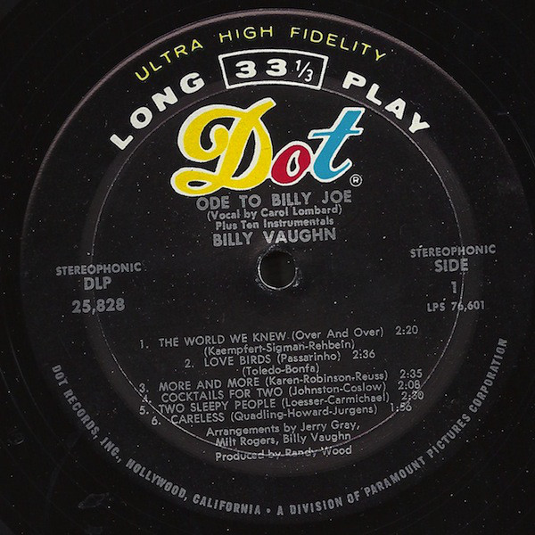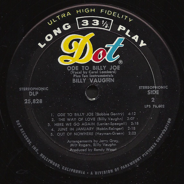 Billy Vaughn – Ode To Billy Joe (LP, Album, Mon)