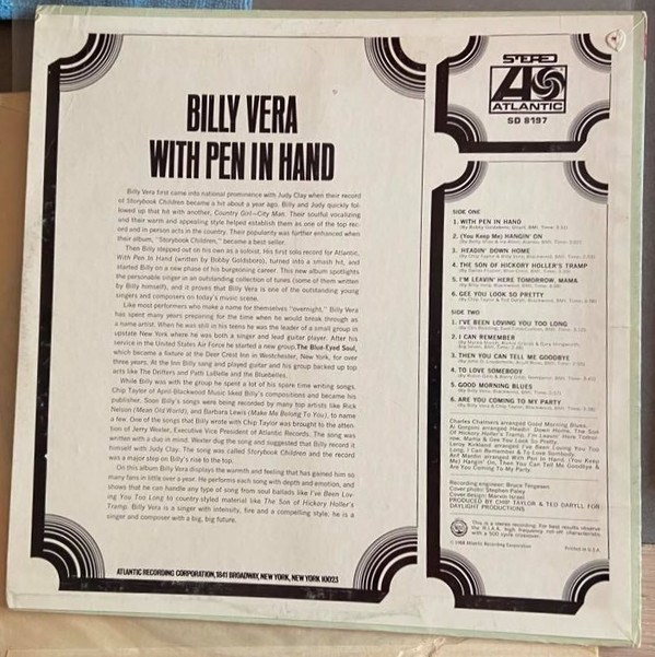 Billy Vera – With Pen In Hand (LP, Album, Ter)