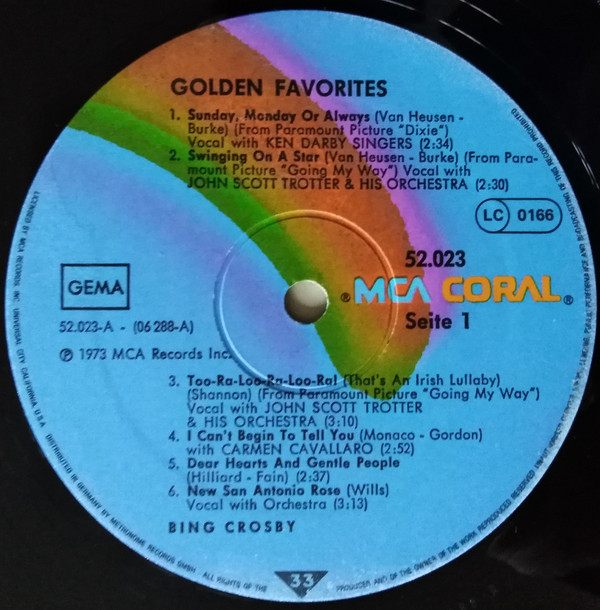 Bing Crosby – Golden Favorites (LP, Comp, RE)