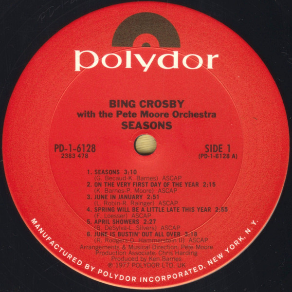 Bing Crosby With The Pete Moore Orchestra* – Seasons (LP, Album)