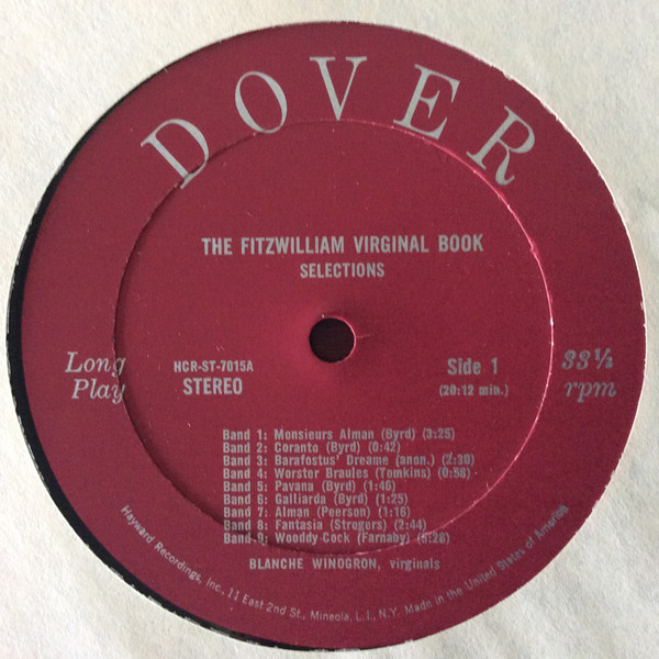 Blanche Winogron – The Fitzwilliam Virginal Book: Selections (LP, Album)