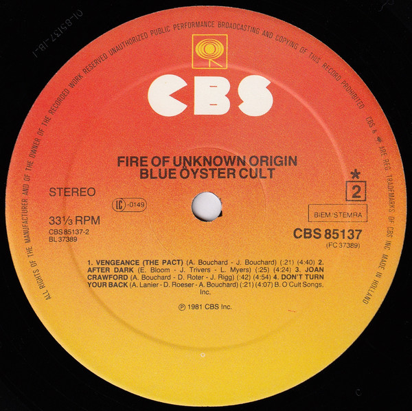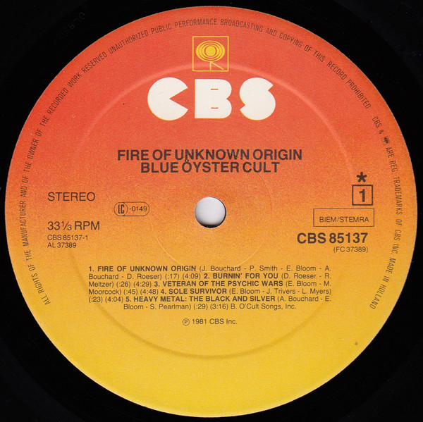 Blue Öyster Cult – Fire Of Unknown Origin (LP, Album)