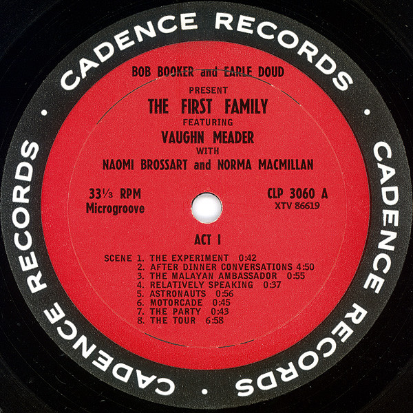 Bob Booker And Earle Doud Featuring Vaughn Meader With Earle Doud ~ Naomi Brossart ~ Bob Booker ~ Norma Macmillan – The First Family (LP, Album, Mono, Bri)