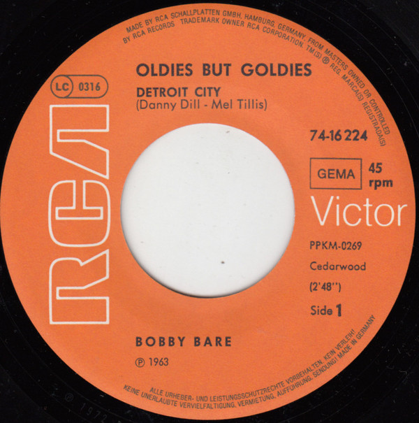 Bobby Bare – Detroit City (7″, Single, Mono, RE)