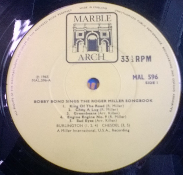 Bobby Bond – Bobby Bond Sings The Roger Miller Songbook (LP, Album, Mono)