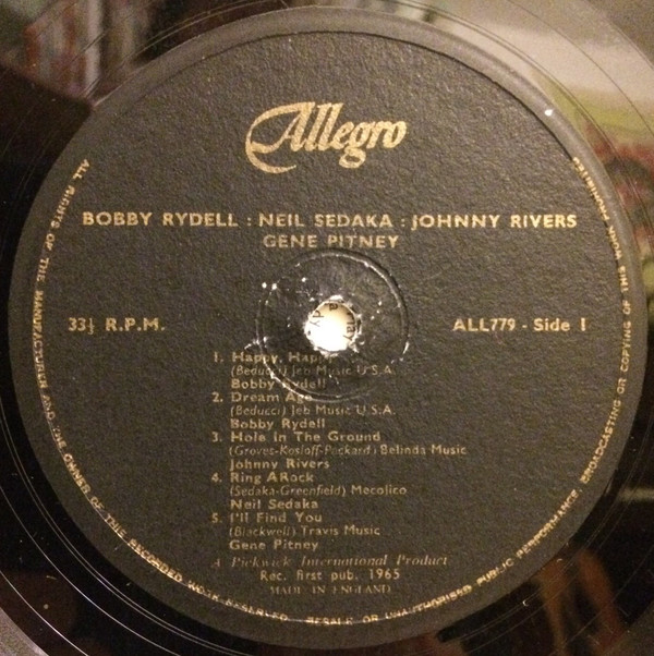 Bobby Rydell, Johnny Rivers, Neil Sedaka, Gene Pitney – Bobby Rydell, Johnny Rivers, Neil Sedaka, Gene Pitney (LP, Comp, Mono)