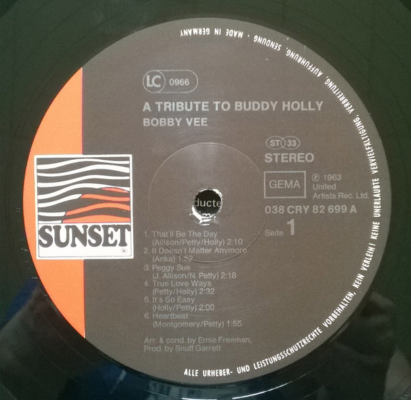 Bobby Vee – A Tribute To Buddy Holly (LP, Comp, RE)
