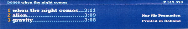 Bones – When The Night Comes (CD, Single, Promo)