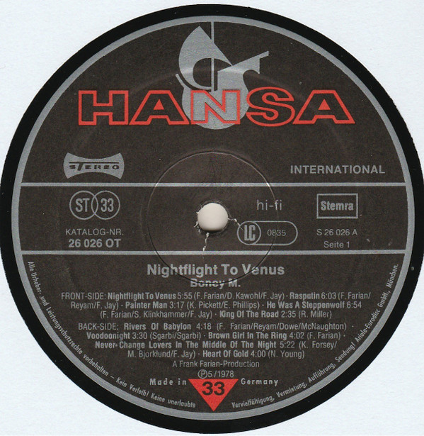 Boney M. – Nightflight To Venus (LP, Album, Gat)