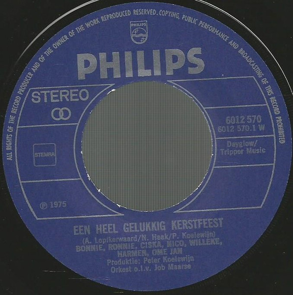 Bonnie*, Ronnie*, Ciska*, Nico*, Willeke*, Harmen*, Ome Jan – Een Heel Gelukkig Kerstfeest / Prettige Kerst En Een Goed Begin (7″, Single)