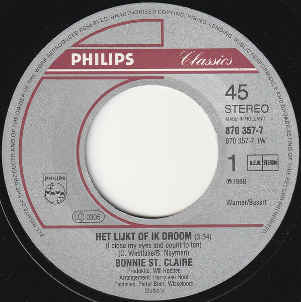 Bonnie St. Claire – Het Lijkt Of Ik Droom (7″, Single)