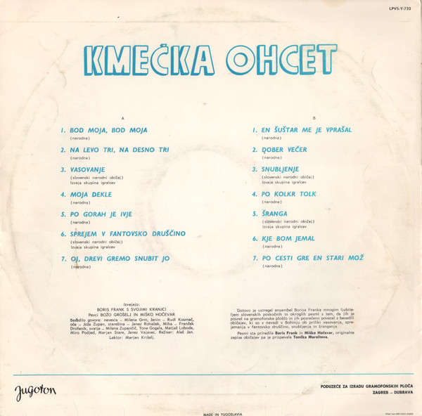Boris Frank S Svojimi Kranjci – Kmečka Ohcet (LP, Album)