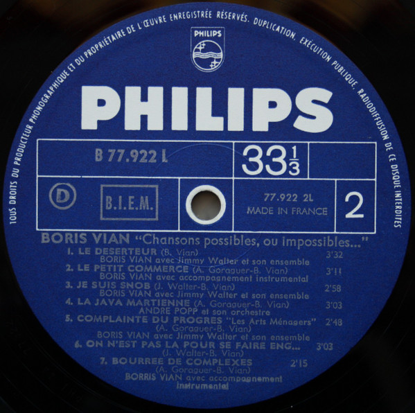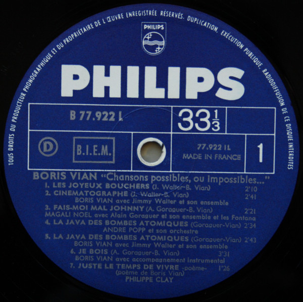 Boris Vian – Chansons Possibles, Ou Impossibles… (LP, Album, Mono, RE)