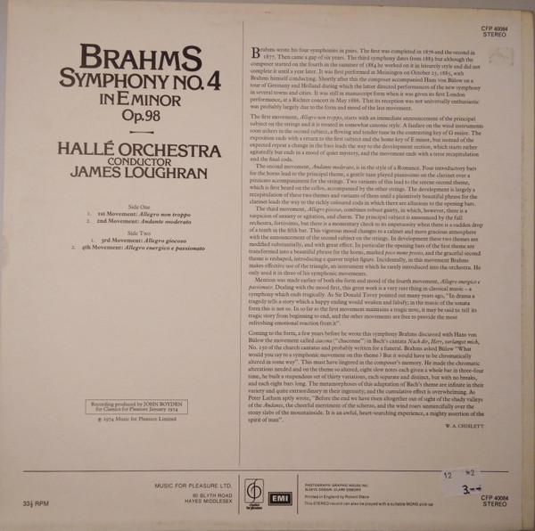 Brahms* – Hallé Orchestra, James Loughran – Symphony No.4 In E Minor (LP)