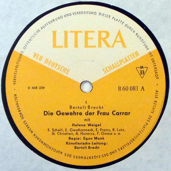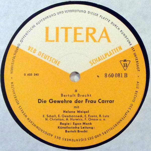 Brecht*, Berliner Ensemble – Die Gewehre Der Frau Carrar (LP)