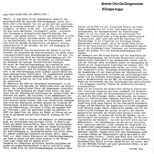 A2. Bremer Chor Die Zeitgenossen, Gruppe Argus – Ich Bin Die Front (Griechenland) 2:53