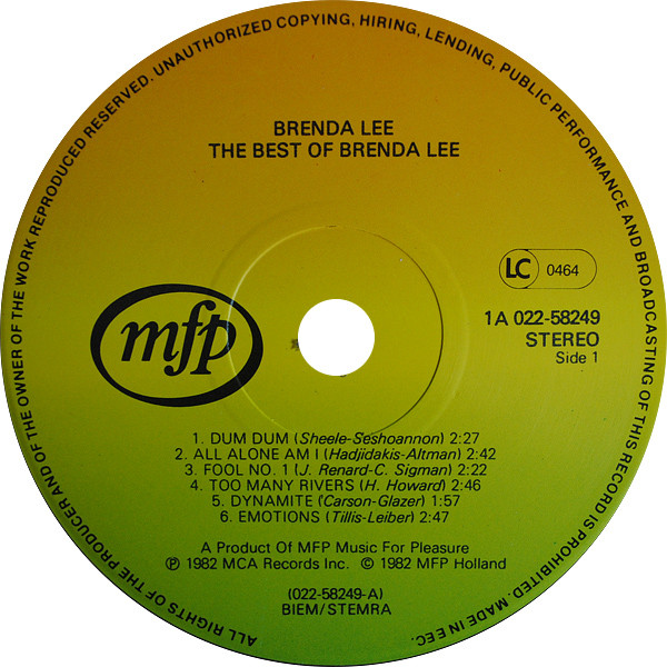 Brenda Lee – The Best Of Brenda Lee (LP, Comp)