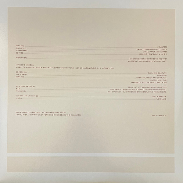 Brian Eno With Jon Hopkins & Leo Abrahams – Small Craft On A Milk Sea (2xLP, RSD, Dlx, Ltd, RE)