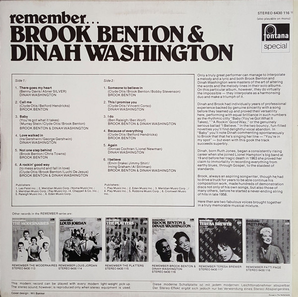 Brook Benton & Dinah Washington – Remember… Brook Benton & Dinah Washington (LP, Album, RE)