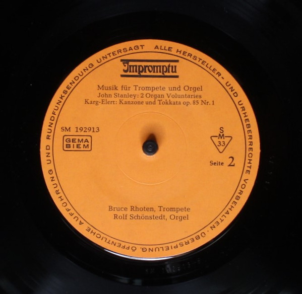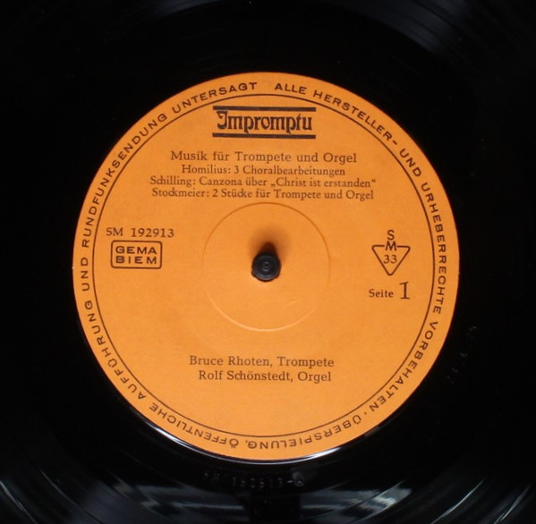 Bruce Rhoten, Rolf Schönstedt – Trompete Und Orgel – ( Originalwerke Von Homilius, Schilling, Stockmeier, Stanley, Karg-Elert ) (LP, Album)