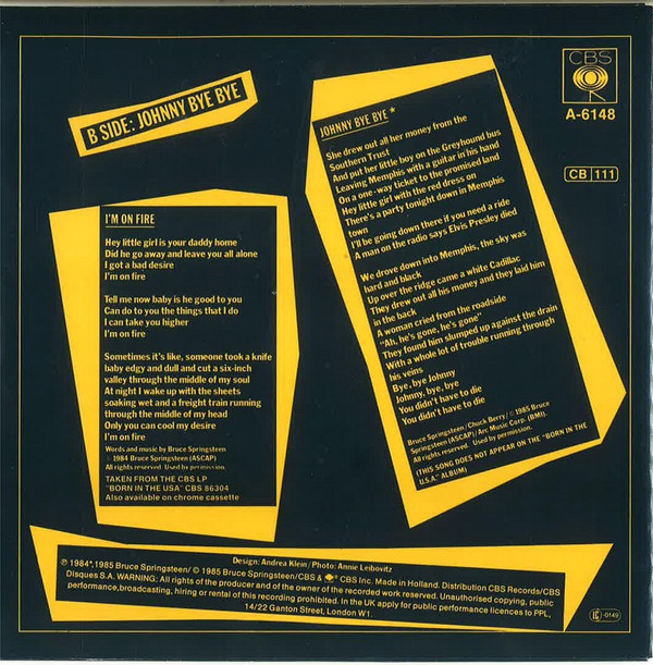 Bruce Springsteen – I’m On Fire (7″, Single, Red)