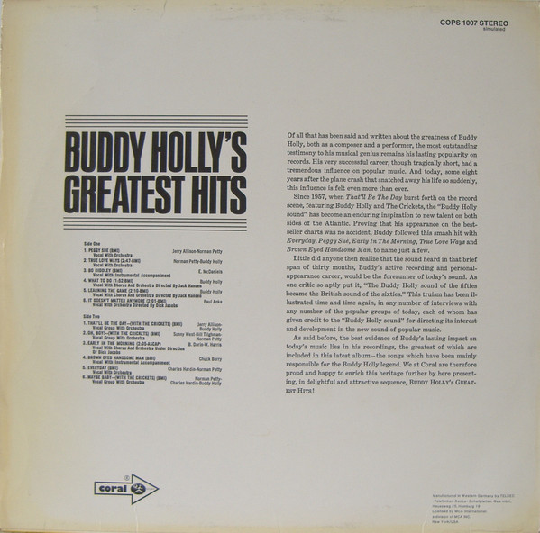 Buddy Holly – Buddy Holly’s Greatest Hits (LP, Comp, RE)