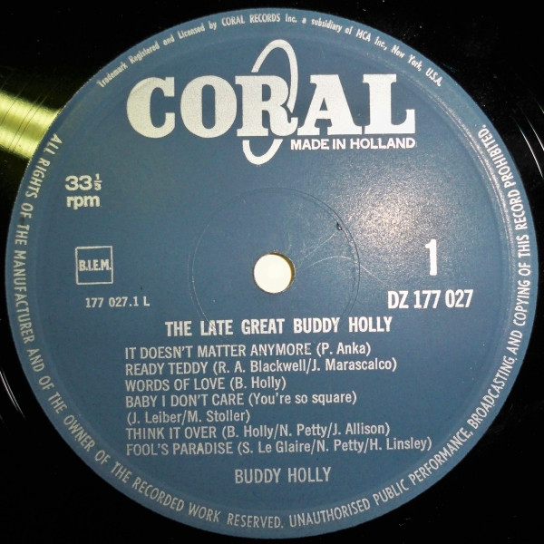Buddy Holly – The Late Great Buddy Holly (LP, Comp)