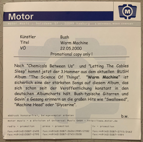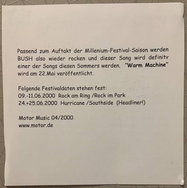 Bush – Warm Machine (CD, Single, Promo)