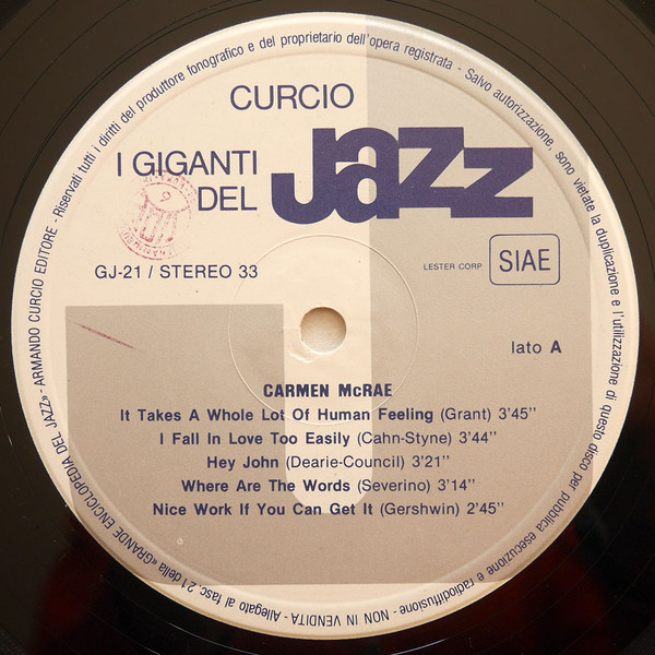 Carmen McRae / Joe Pass / Larry Bunker / Ray Brown – I Giganti Del Jazz Vol. 21 (LP, Album, RP)