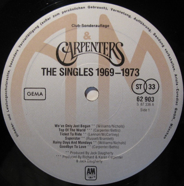 Carpenters – The Singles 1969-1973 (LP, Album, Comp, Club, Gat)