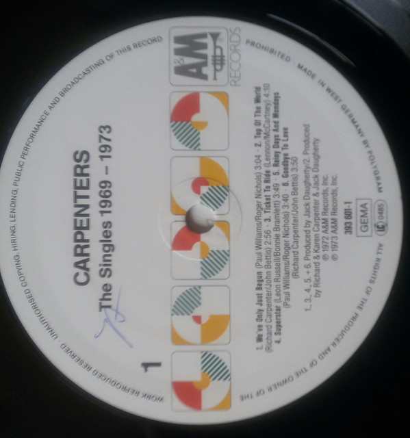 Carpenters – The Singles 1969-1973 (LP, Comp, RE)