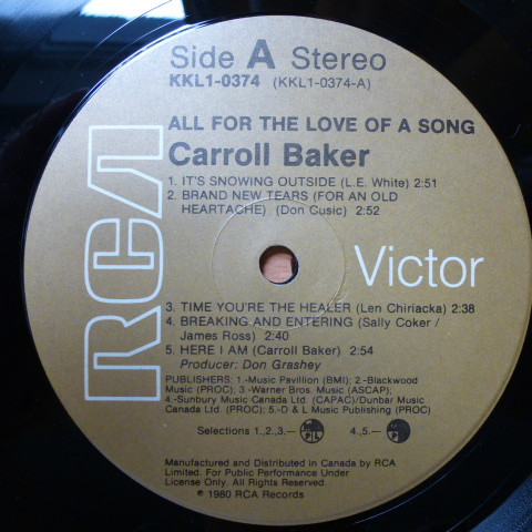 Carroll Baker – All For The Love Of A Song (LP, Album)