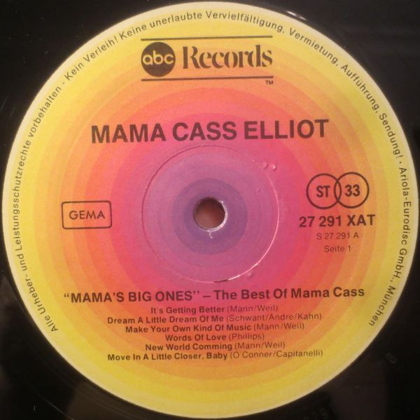 Cass Elliot – Mama’s Big Ones: Her Greatest Hits (LP, Comp)