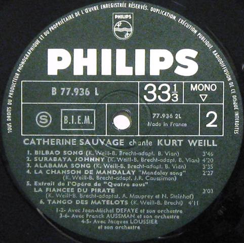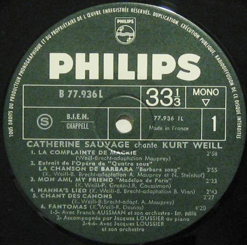 Catherine Sauvage – Catherine Sauvage Chante Kurt Weill (LP, Mono, Gre)