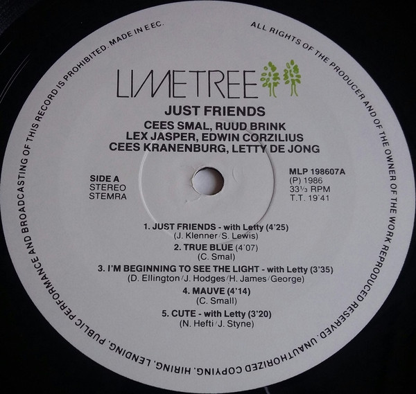 Cees Smal Quintet Featuring Letty De Jong – Just Friends (LP, Album)