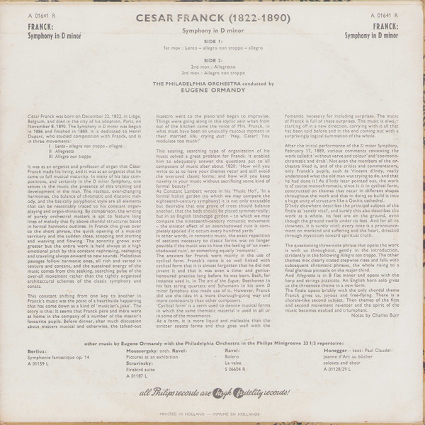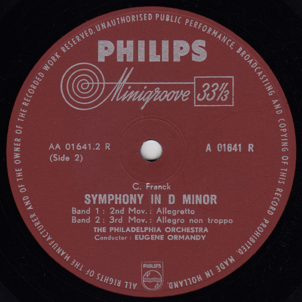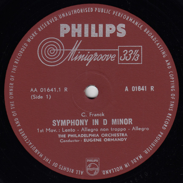 César Franck : The Philadelphia Orchestra, Eugene Ormandy – Symphony In D Minor (10″)