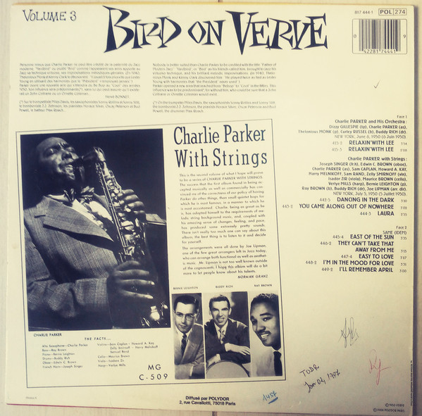Charlie Parker – Bird On Verve – Volume 3 (With Strings) (LP, Comp)