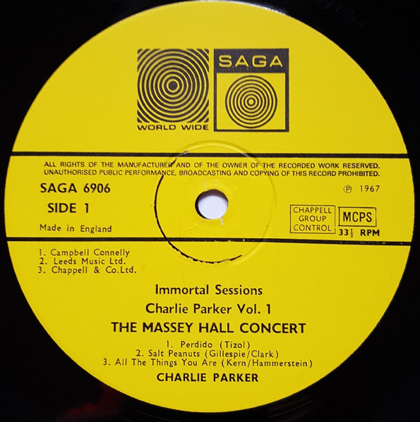 Charlie Parker – Volume 1 The Massey Hall Concert (LP, Album, RE)