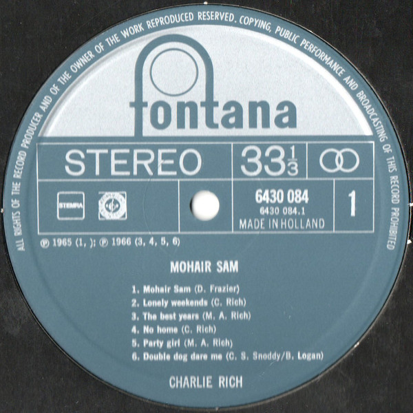 Charlie Rich – Mohair Sam (LP, Album, Comp)