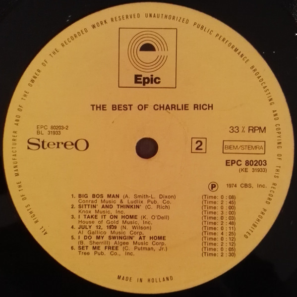 Charlie Rich – The Best Of Charlie Rich (LP, Comp)