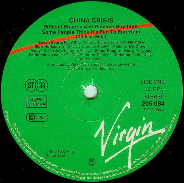 China Crisis – Difficult Shapes & Passive Rhythms, Some People Think It’s Fun To Entertain (LP, Album)