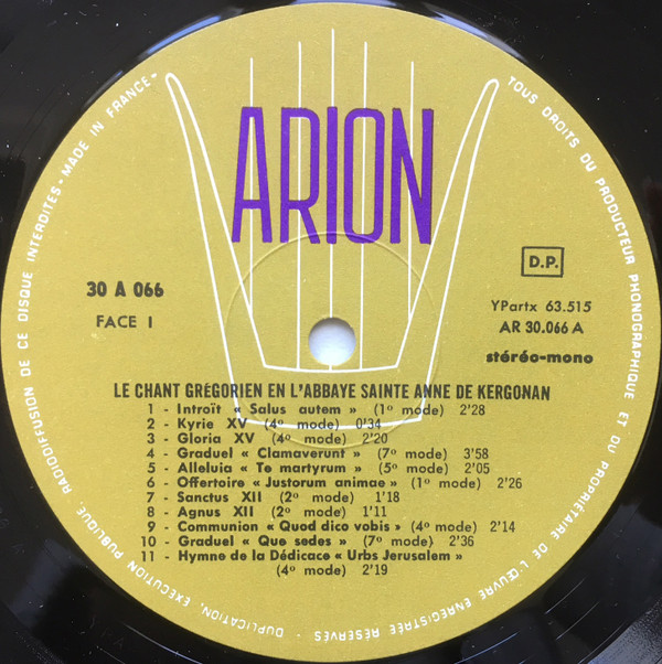 Chœur Des Moines De Kergonan – Le Chant Grégorien En L’Abbaye Sainte-Anne De Kergonan (LP, Ⓐ)