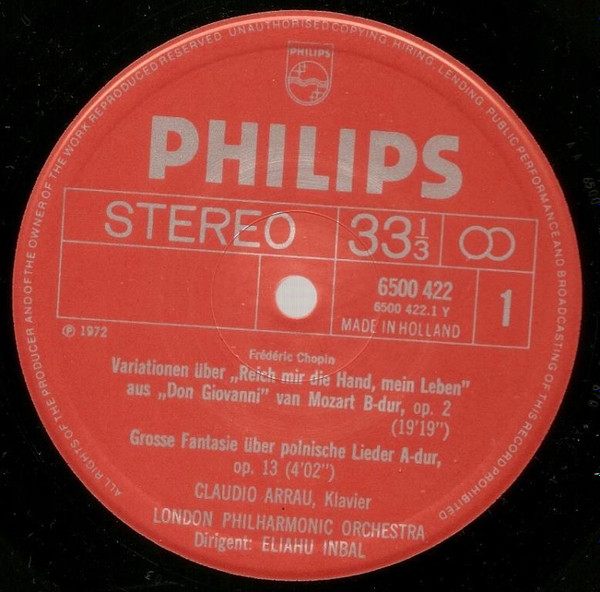 Chopin* ; Claudio Arrau, London Philharmonic Orchestra, Eliahu Inbal – Variationen Über “Là Ci Darem La Mano” / Grande Fantasie / Andante Spianato Et Grande Polonaise Es-dur (LP)