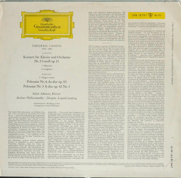 Chopin*, Stefan Askenase • Berliner Philharmoniker • Dirigent: Leopold Ludwig – Klavierkonzert Nr.2 • Piano Concerto (LP, Mono)