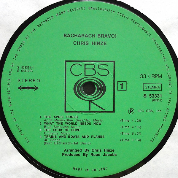 Chris Hinze – Hinze Plays Bacharach (LP)