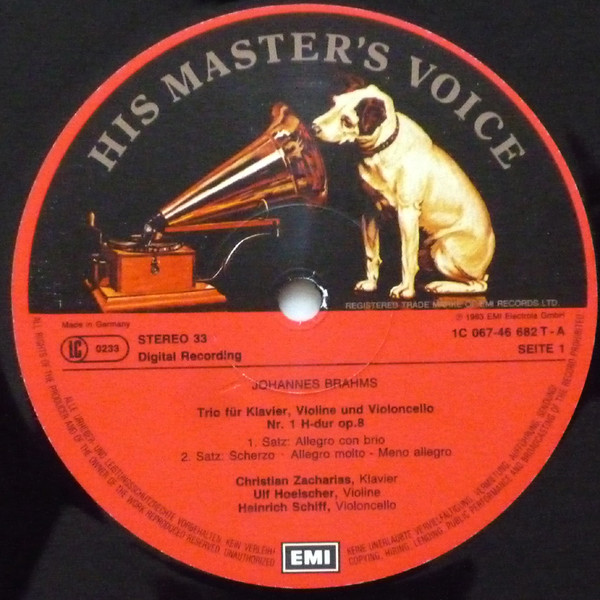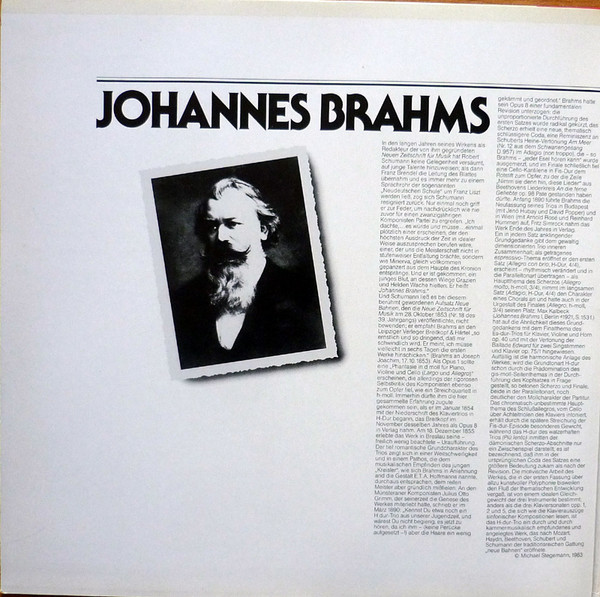 Christian Zacharias, Ulf Hoelscher, Heinrich Schiff – Brahms – Klaviertrio H-Dur Op. 8 (LP, Album, Gat)