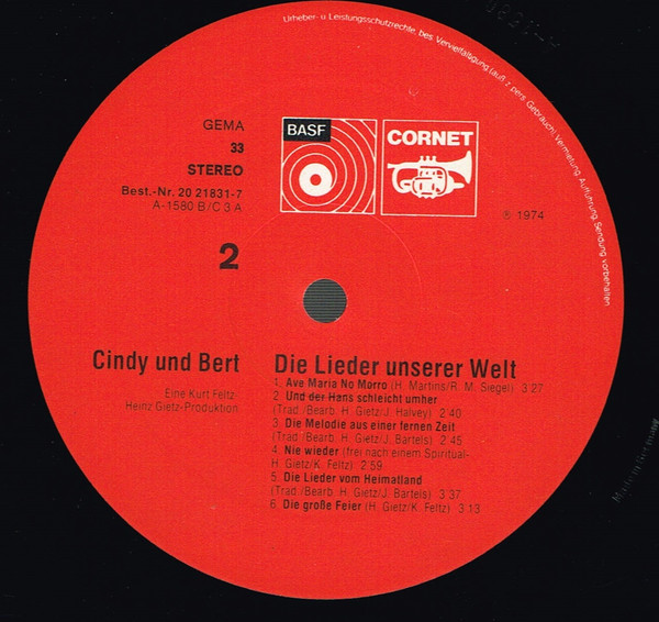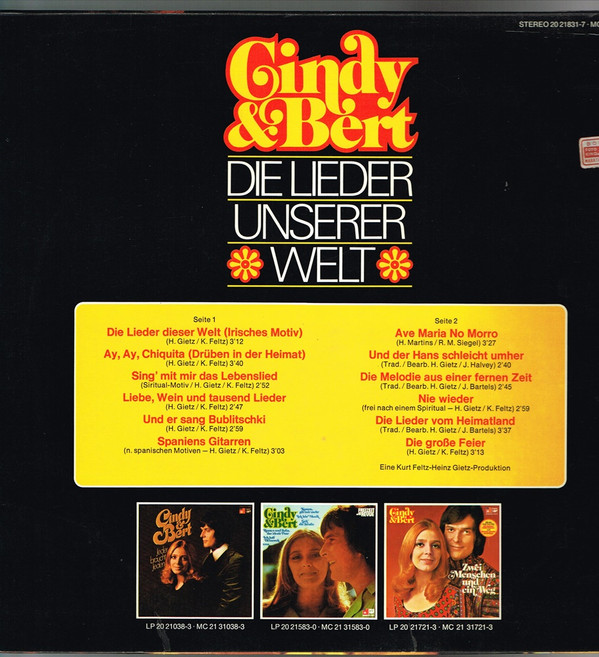 Cindy & Bert – Die Lieder Unserer Welt (LP, Album)